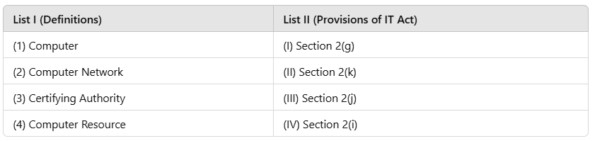 Computer is defined under Section 2(I), Computer Network under Section 2(J), Certifying Authority under Section 2(G), and Computer Resource under Section 2(k).