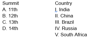 Match the following BRICS Summits with their respective host countries :