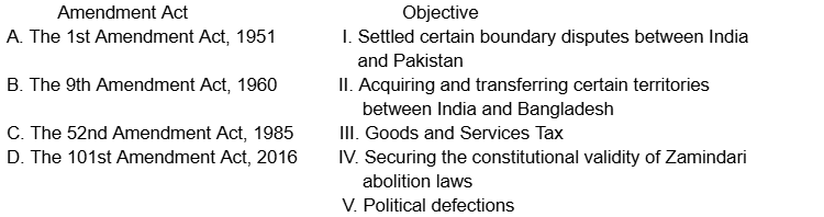 Match the following Constitutional Amendment Acts with their respective objectives :