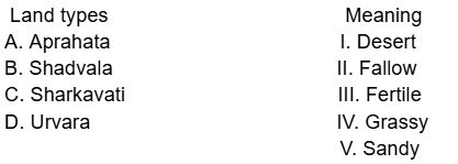 Match the following land types with their meaning : Choose the correct answer :