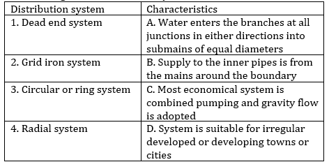 Match the following water distribution system with their characteristics.