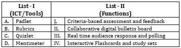 A. Padlet matches with II. Collaborative digital bulletin board. Padlet is a web-based tool that allows users to create and share content on a virtual wall.