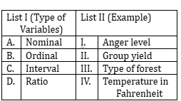 The correct matching of List I (Types of Variables) with List II (Examples) is as follows: