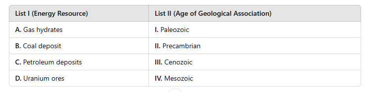 · Gas Hydrates: Methane trapped in crystalline water ice, found in modern cold marine environments.