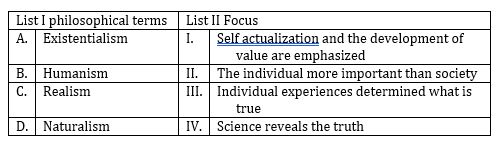 Correct Matching: · A-III: Existentialism → Individual experiences determine what is true