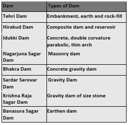 Match the major dams of India with their types. Dam Type A. Bhakra Dam 1. Arch dam B. Idukki Dam 2. Earthen dam C. Banasura Sagar Dam 3. G