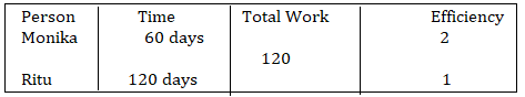 Difference in time taken by Ritu and Monika = 2 - 1 = 1 unit