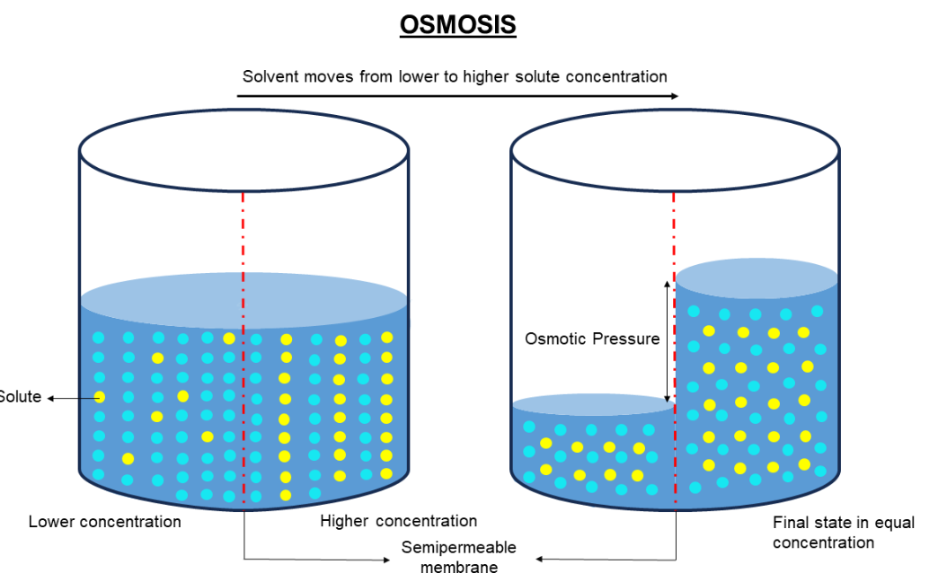 Osmosis is the movement of water molecules from a region of their higher concentration (dilute solution) to a region of their lower concentration (concentrated solution) through a semi-permeable membrane.