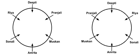 Muskan, Amrita, Pranjali, Deepti, Riya, and Sonali are six friends sitting around a circle facing the center. Muskan is between Amrita and Pranjali. Amrita is opposite to Deepti. Riya is not an immediate neighbor of Amrita. Who is opposite to Sonali?
