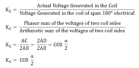 The coil span factor or pitch factor is defined as the ratio of the voltage generated in the short-pitch coil to the voltage generated in the full-pitch coil. The coil span factor is also known as the chording factor.