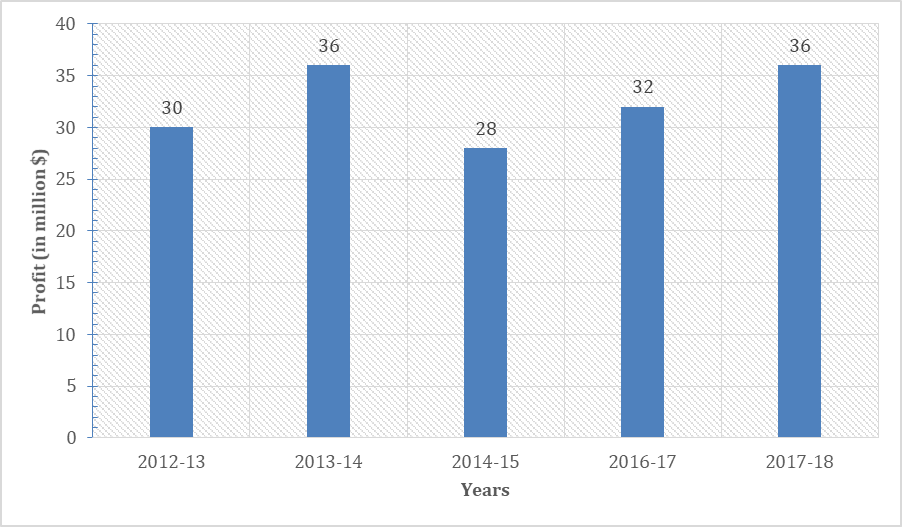 4. The company has recorded profits greater than or equal to 30 million $ for out of five years (statement is true because year 2012-2013, 2013-2014, 2016-2017, 2017-2018 profit greater than 30 million $).
