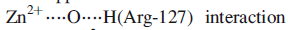the Zn2+ ion being able to move towards Arg-127 as the interaction develops. To complete the catalytic cycle, an H2O ligand refills the vacant site on the Zn2+ centre.