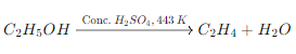 · On heating ethanol (C2H5OH) with concentrated sulfuric acid (H2SO4) at 443 K, ethene (C2H4) is produced. This reaction is known as dehydration of ethanol, where water is removed from the ethanol molecule to form ethene.