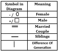 ‘P – Q’ means P is mother of Q.