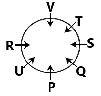 P, Q, R, S, T, U and V are sitting around a circular table facing the centre. Only one person sits between U and Q when counted from the right of U. Only one person sits between Q and T. Only one person sits between U and V. Only two people sit between P and T. Only one person sits between S and V. How many people sit between U and S when counted from the left of S?