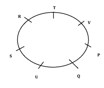 Given- P, Q, R, S, T, U and V are sitting around a circular table facing the center. \R sits third to the left of Q.