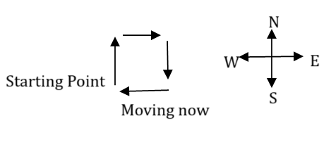 Pallavi starts walking towards the north and after covering a distance. she turns to the right. then again to the right and after covering some more distance. she again turns to the right, Now. in which direction is she facing? (All turns are 90 degree turns only)