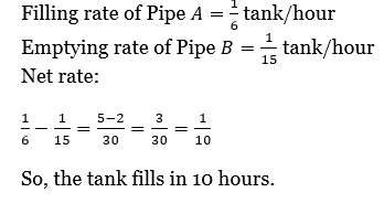 Pipe A can fill a tank in 6 hours. Pipe B can empty it in 15 hours. If both the pipes are opened together, then the tank will be filled in how many hours?