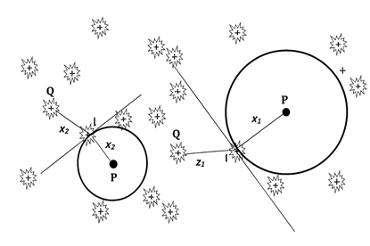 Explanation :Upon reviewing the image more carefully, the technique depicted corresponds to the T-square method. This method is a plotless sampling technique used in plant ecology to estimate plant density. The T-square method involves using two perpendicular lines that intersect at the sampling point (P). The distances from the sampling point (P) to various plants are measured along these lines, usually to the nearest plants in each of the four quadrants formed by the intersecting lines.
