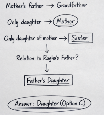 Pointing towards a photograph, Raghu said, 'She is the only daughter of my mother's father’s only daughter'. How is the lady related to Raghu's father?