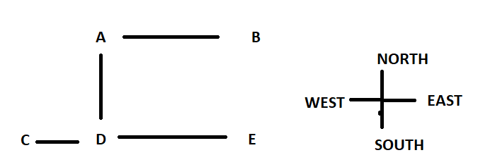 Bhairav started from his home and travelled | 50 meters towards East then turned to his right and travelled 150 meters from there he turned to his left and travelled 100 meters to reach a temple. From the temple he moved 250 meters towards North and then turned left and travelled 100 meters. Finally, he turned to his left and moved 100 meters to reach a point 'P'. What is the direction and shortest distance of his home from the point 'P'?