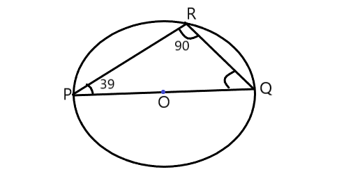The angle subtended by a diameter of a circle at the circumference is a right angle, i.e., ∠PRQ = 90
