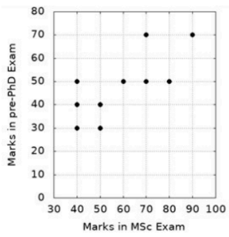 First, we will write the marks of all the students in co-ordinate form, with MSc marks as x co-ordinate and PhD marks as y co-ordinate, then we will have the following data of students: