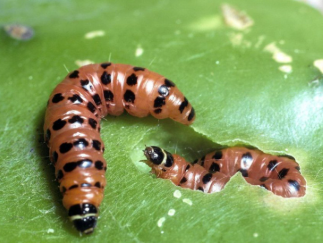 The larvae of this moth burrow into the cactus pads, causing extensive damage and effectively reducing its population.