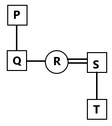 Q is the son of P. P is the father of R. R is the wife of S. T is the son of S. How is Q related to T?