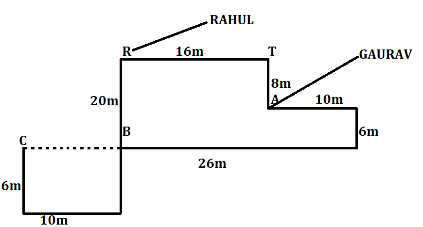 He again turns and walks 40 metres in south-east and finally he turns again towards his house.