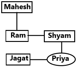 Ram is the brother of Shyam and Mahesh is the father of Ram. Jagat is the brother of Priya and Priya is the daughter of Shyam. How is Mahesh related to Jagat?