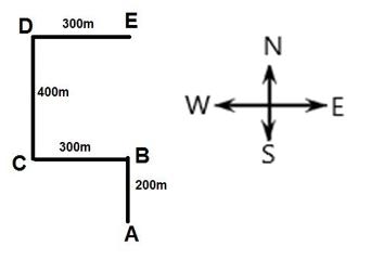He again turns and walks 40 metres in south-east and finally he turns again towards his house.