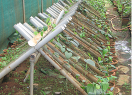 Fill bamboo splits with a mix of coir dust and farmyard manure (1:1 ratio).