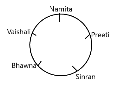 Preeti is sitting between Namita and Simran.