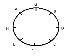 A, B, C, D, E, F, G and H are sitting around a circle at an equal distance facing the centre of the circle.