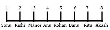 From the given option position of Rohan – 5, Manoj – 3 and Ritu- 7 all are sitting on odd number position and Anu – 4 is sitting on even number position. Therefore, the correct option is (d).