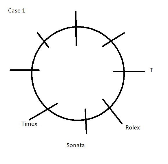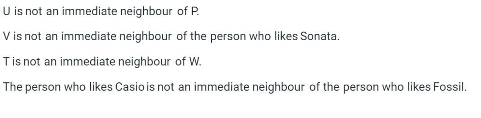 2) The person who likes Sonata is an immediate neighbour of both persons who like Timex and Rolex.