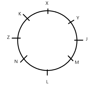 Seven friends M, N, J, K, P, Q and R are sitting in a circle facing at the centre but not necessarily in the same order.