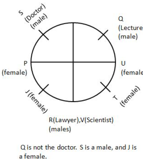 H, I, J, P, Q, R and S are sitting around a circular table facing the centre of the table. P sits third to the left of Q. R sits second to the left of S. Q is an immediate neighbour of both I and R. H is not an immediate neighbour of P.