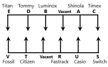 · Two seats between C and B, and B sits third to the right of the person who likes Timex.