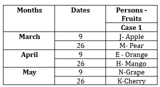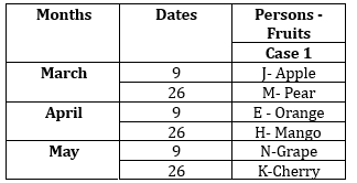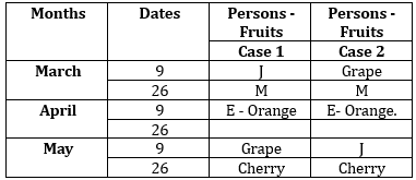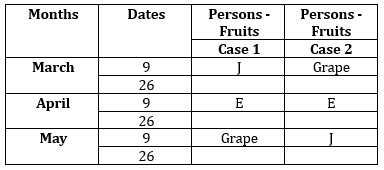 Clues: J was born on an odd numbered date in the month having odd number of days. Three persons were born between J and the one who likes Grape. E was born on an odd number date but doesn’t like Grape.