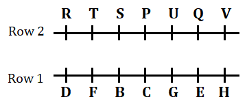 14 persons sit in two parallel rows in such a way that 7 persons sit in each row. B, C, D, E, F, G, H – sit in row 1 and face north while P, Q, R, S, T, U, V – sit in row 2 and face south. The persons do not sit in the given order. The persons of both rows face each other.