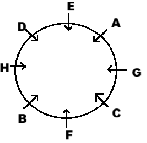 Read the given instructions carefully and answer the question that follows.8 people — A, B, C, D, E, F, G, H - are sitting at a round table facing eac