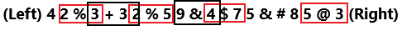 (Left) 1 & 9 6 > 7 5 * 7 + 5 ^ 7 0 * 4 % $ (Right)