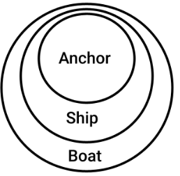 II. Some ships are anchors - True (The given conclusion is true because some parts of the circle representing ships lie inside the circle representing anchors while some lie outside. So, from this, it can be concluded that some ships are anchors.)​