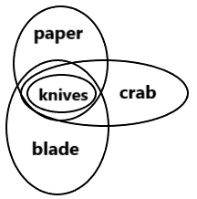 I. All crabs are papers. (False, we only know that knives are both crabs and papers. But it does not mean all crabs are papers).