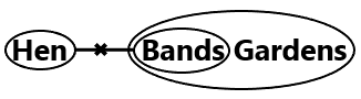 I. Some hens are gardens. (False, there is no direct or indirect relation between hens and gardens).