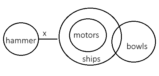(III) Some bowls are not hammers.(True because Some ships are bowls and No ship is a hammer.)