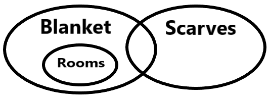 Just because "rooms" are a subset of "blankets" does not mean they have any connection with "scarves."