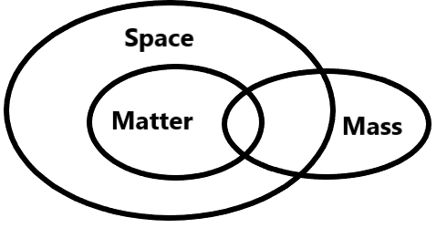 Since Matter is completely inside Space, the part of Mass that overlaps with Matter must also be inside Space.